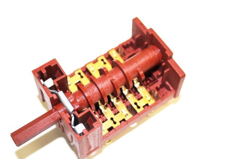 • De Luxe ПМЭ EP190. Регулятор выбора различных режимов нагрева, включения и выключения духовки или варочной панели. Может быть двух- и трехпозиционным.