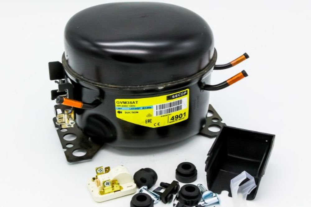 Компрессор служит одной из основных частей холодильного оборудования. Его предназначение — сжимать и перекачивать хладагент (фреон) по замкнутому контуру, обеспечивая его циркуляцию по системе и поддерживая заданную температуру в камерах холодильника.