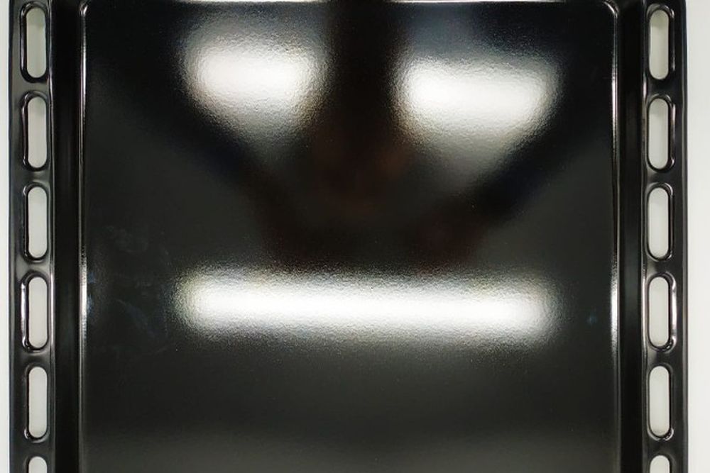 - Из черной стали. Прочные и устойчивы к деформациям. Их особенность — способность равномерно удерживать тепло, что благоприятно сказывается на качестве выпечки. Часто такие противни дополнительно подвергают специальной обработке для предотвращения образования ржавчины, а поверхность может иметь матовое или слегка шероховатое покрытие.