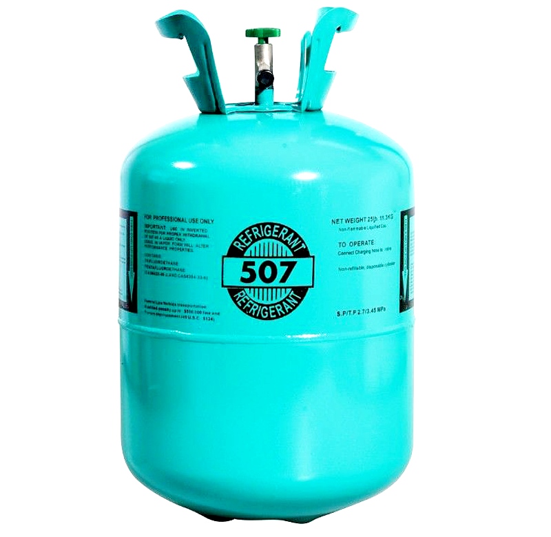 Положительные особенности хладагента R507: Низкотемпературный R507 ‒ запатентованный хладон, экологически безопасный и специально разработан с целью долгосрочной работы газофракционирующей установки (ГФУ), рассчитанной на R502. Главное преимущество фреона в полной безопасности и легком сервисном обслуживании при проведении дозаправки, поэтому вещество применяется для циркуляции в контурах современных холодильных установок. Характеризуется нулевым потенциалом воздействия на озоновый слой и температурой кипения 46,6 °С. По холодильным и другим свойствам аналогичен R502 и R404a. Совместимость с типом масла: синтетическое. Габаритные размеры: 250х250х420мм Вес газа в баллоне: 11.3кг Объём: 0,026куб.м.
