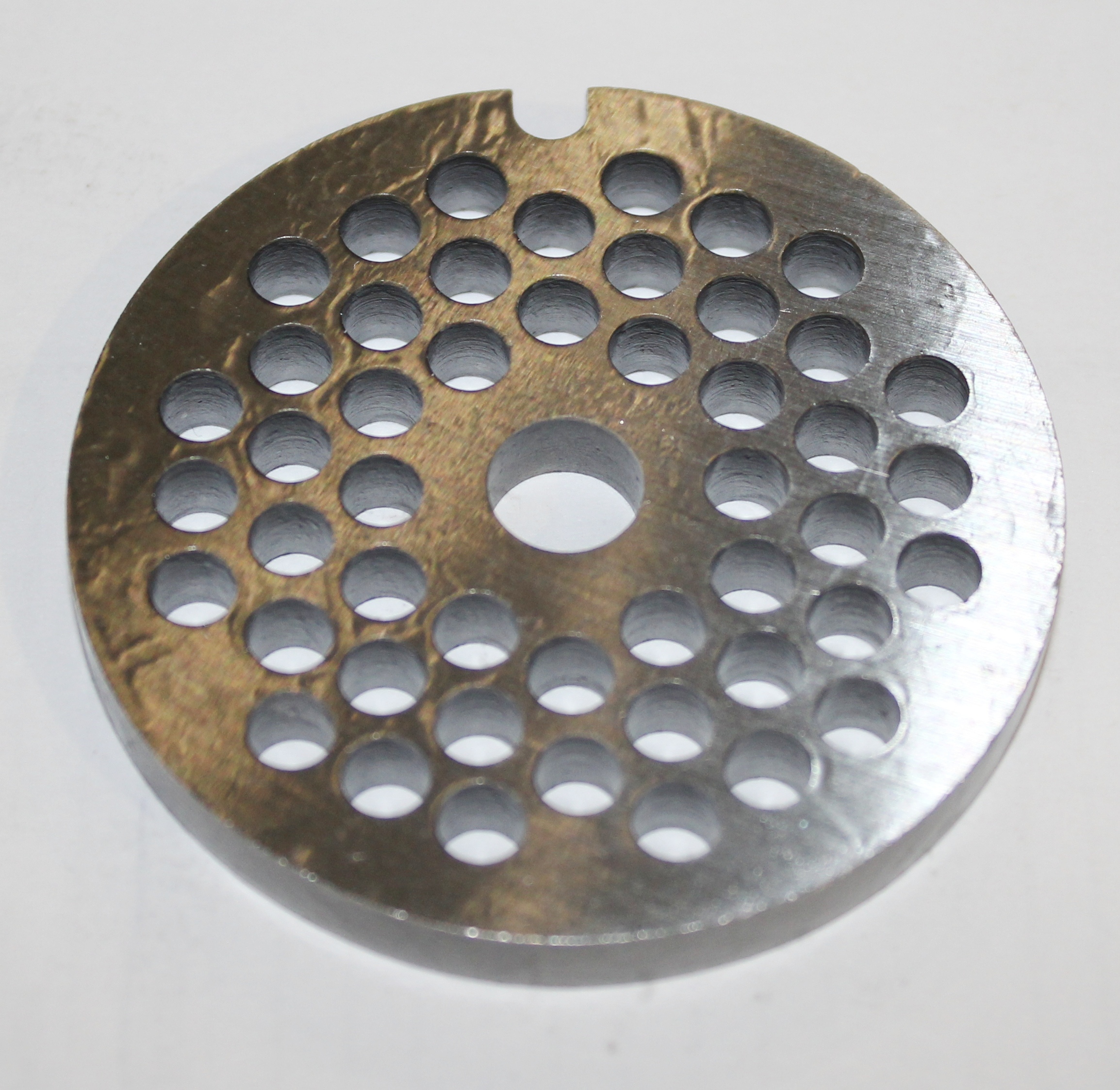 Описание для сайта:Решетка для мясорубки Braun средняя Внешний диаметр 53 мм Диаметр отверстий 4,5 мм Диаметр центрального осевого отверстия 8 мм Толщина решетки 5 мм.