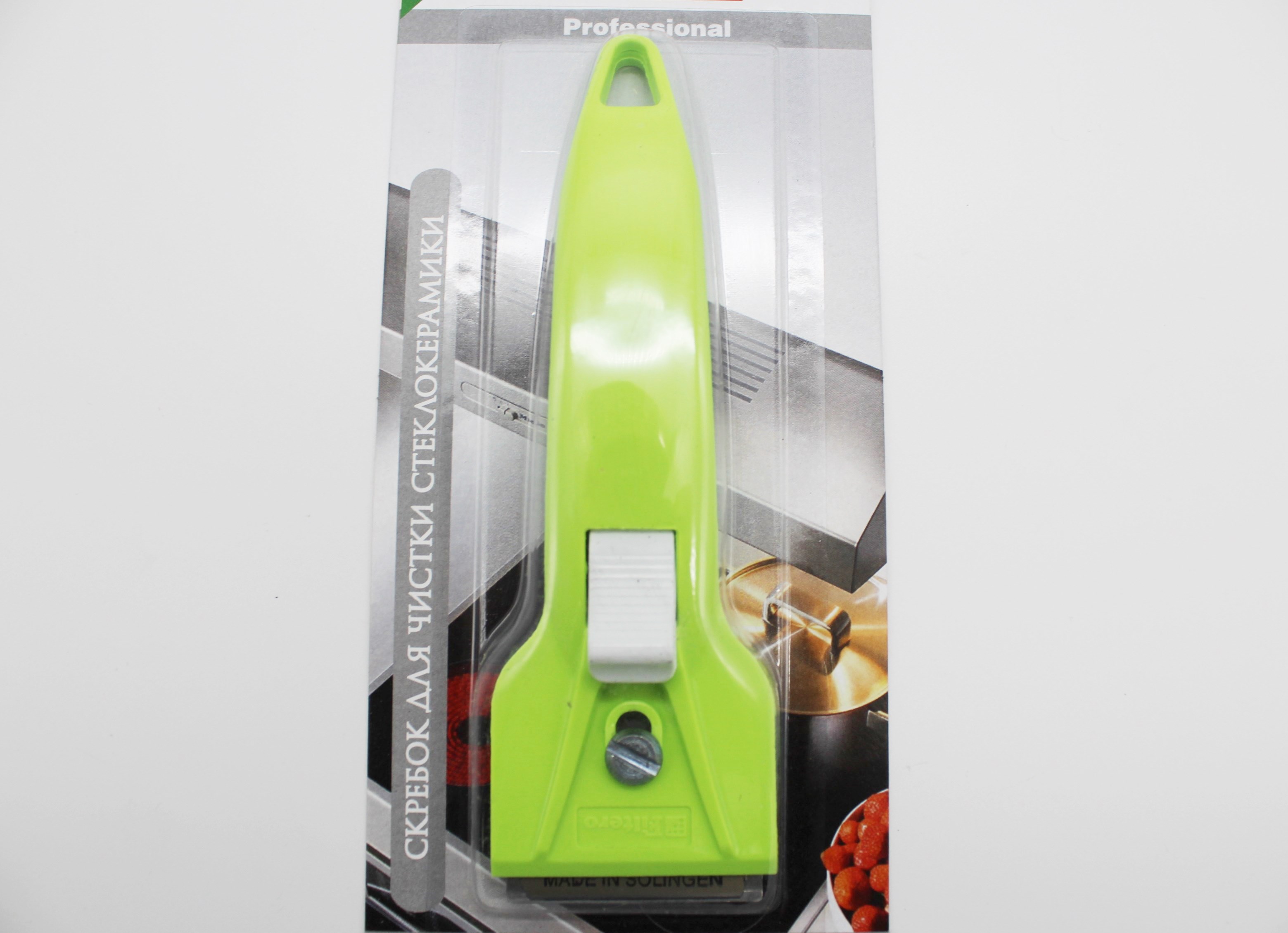Предназначен для чистки стеклокерамических, кафельных и стеклянных поверхностей от застаревших и пригоревших загрязнений. Скребок позволяет бережно и эффективно удалять загрязнения со стеклокерамических плит. Правильный уход продлевает срок службы плиты. Применяйте скребок до использования средств бытовой химии. После механического удаления загрязнений рекомендуется обработать поверхность специальными средствами для ухода. Надежное и острое лезвие от мирового лидера Solingen обезопасит технику от царапин