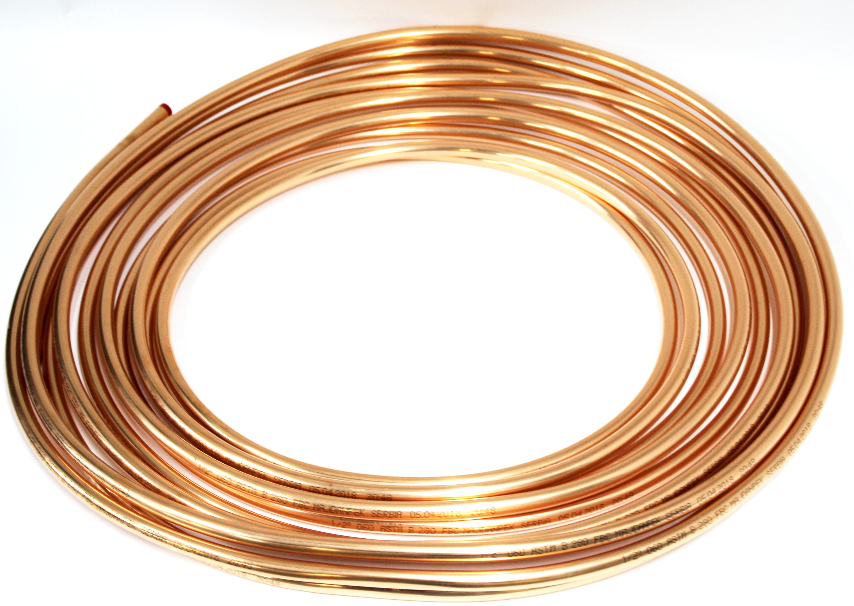 Труба медная: Ø 1/2; Толщина стенки - 0,813 мм; Длина трубы в бухте - 15 м; Наружный диаметр - 12,7 мм.
